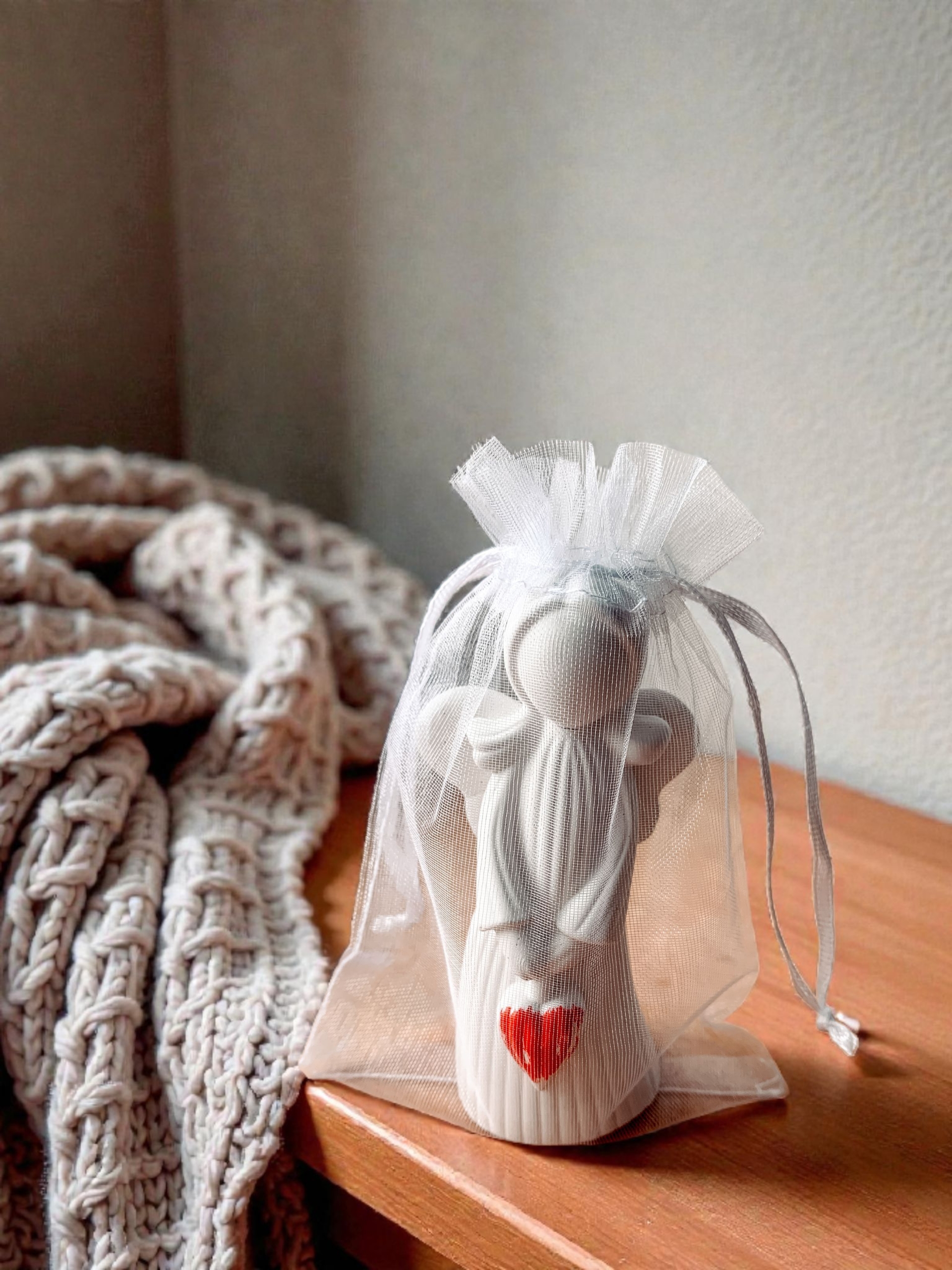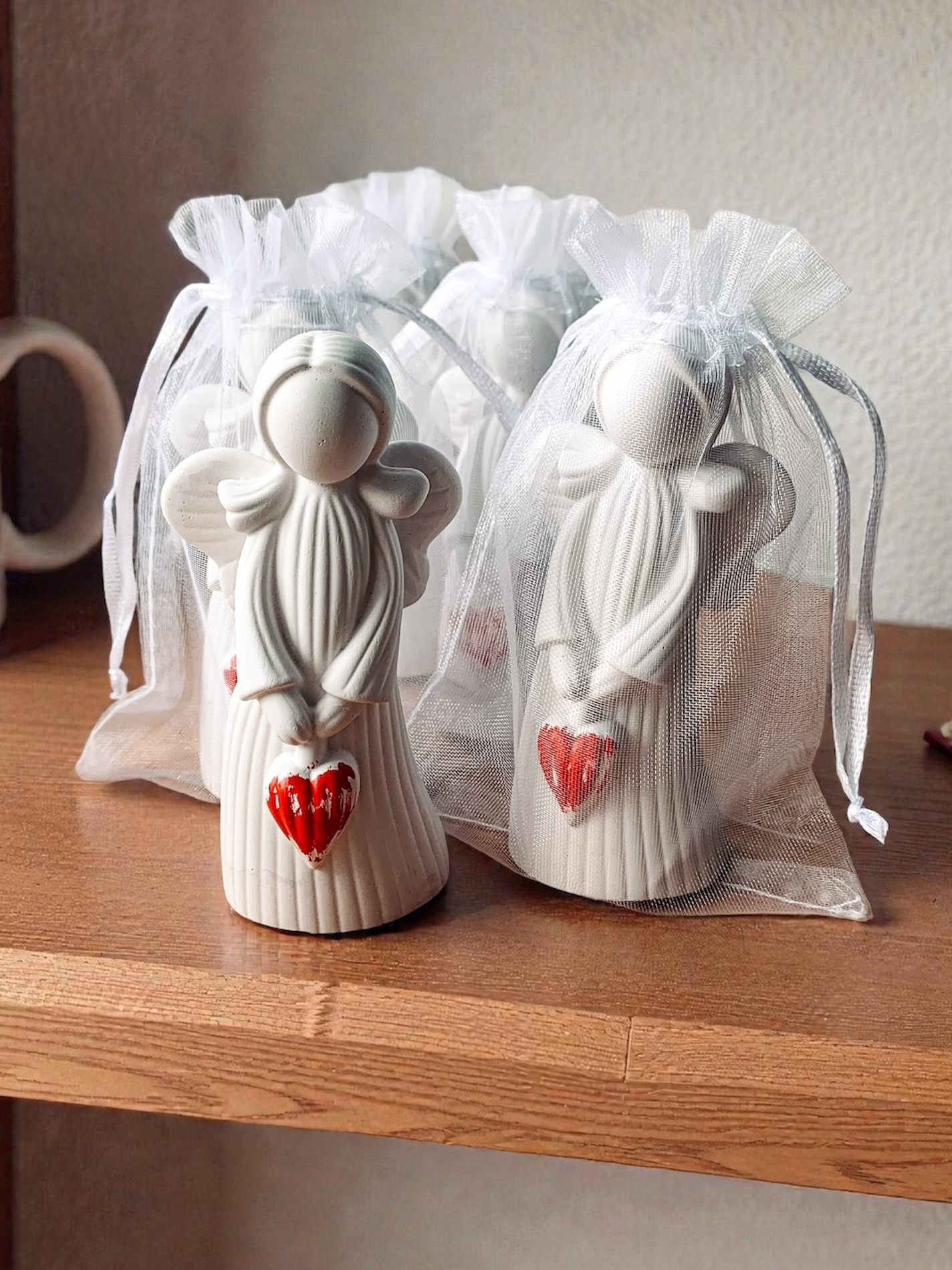 Biały aniołek z sercem – elegancki upominek dla gości na różne okazje