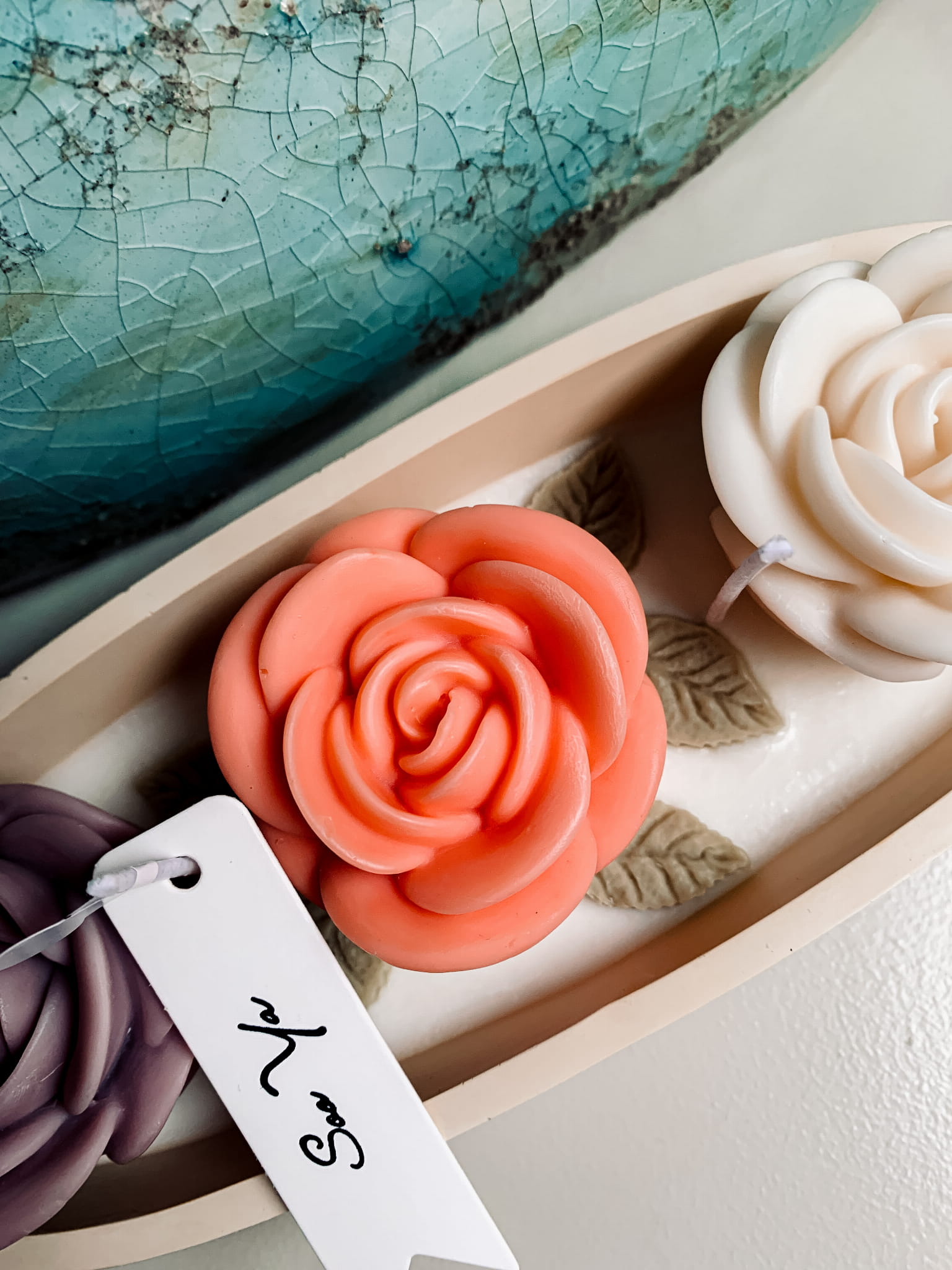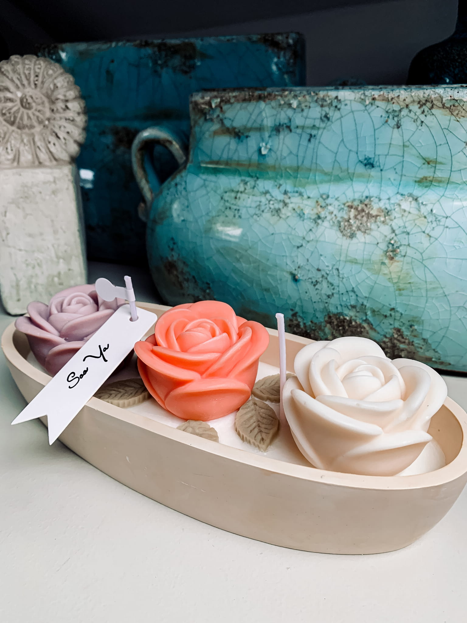 Świeca dekoracyjna Trzy Róże – Rękodzieło z wosku sojowego