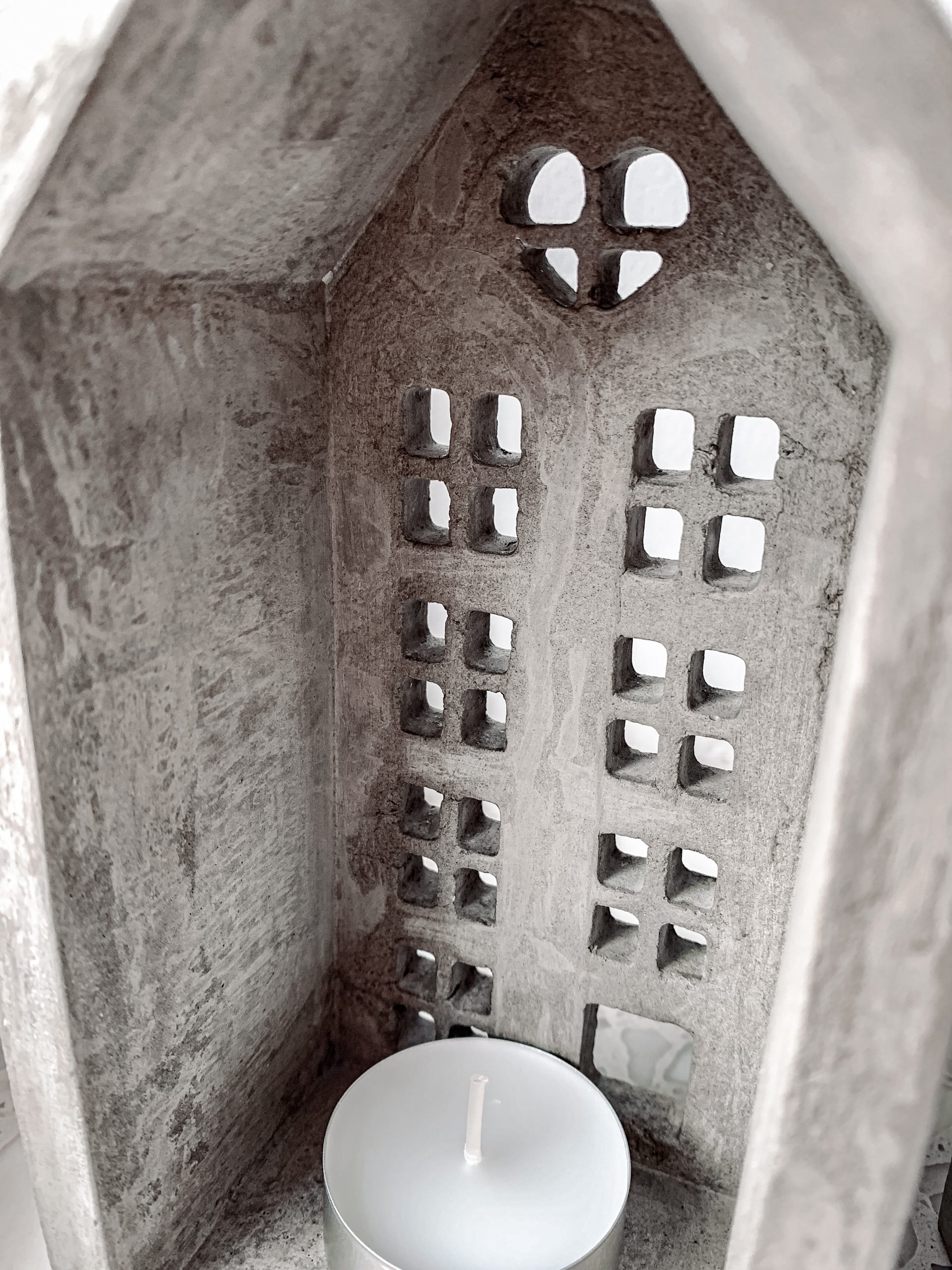 Zestaw betonowych lampionów – mały i duży domek na świeczki T-light