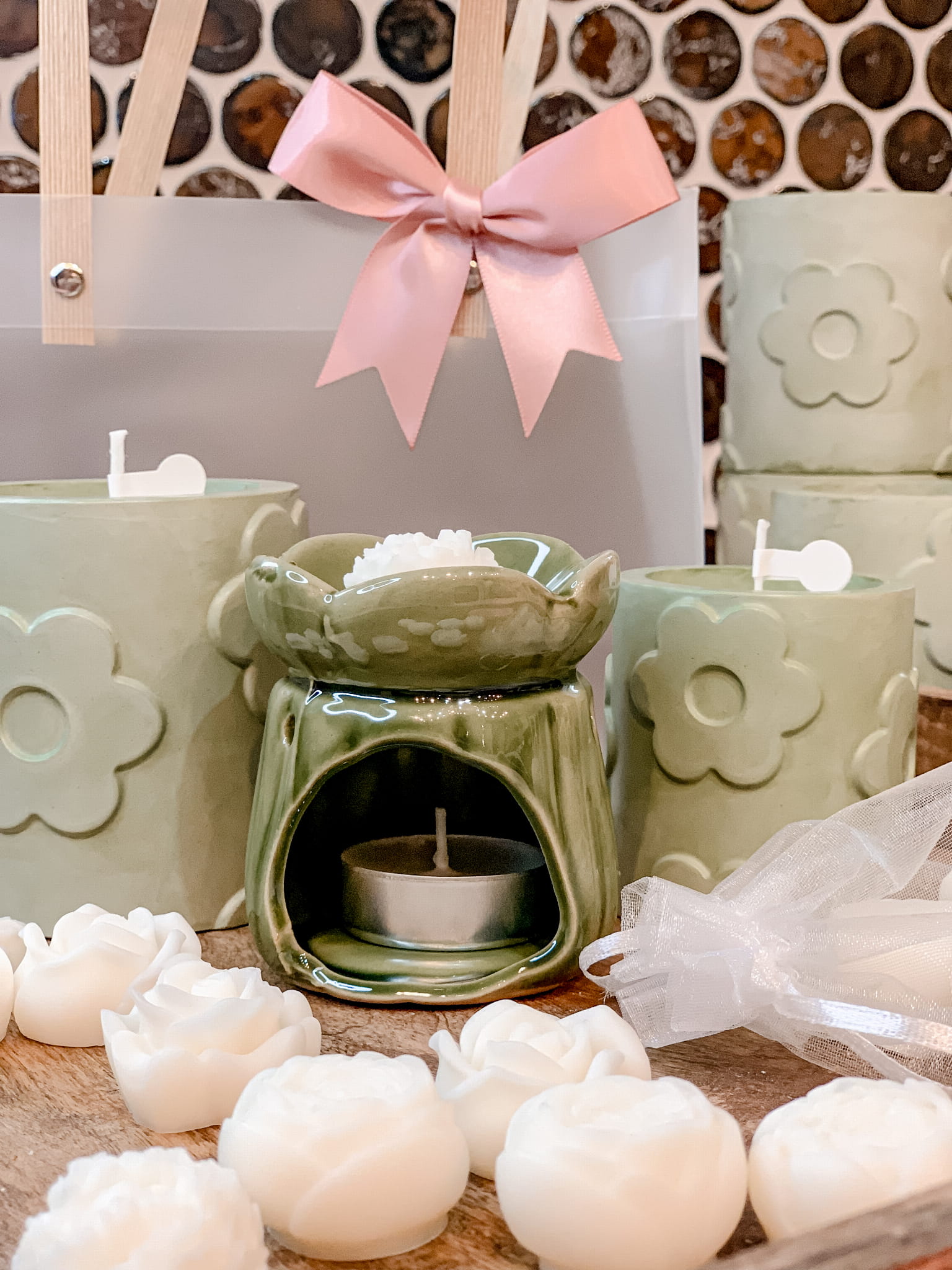 Zielona Cisza – zestaw ze świecami sojowymi, kominkiem i woskami
