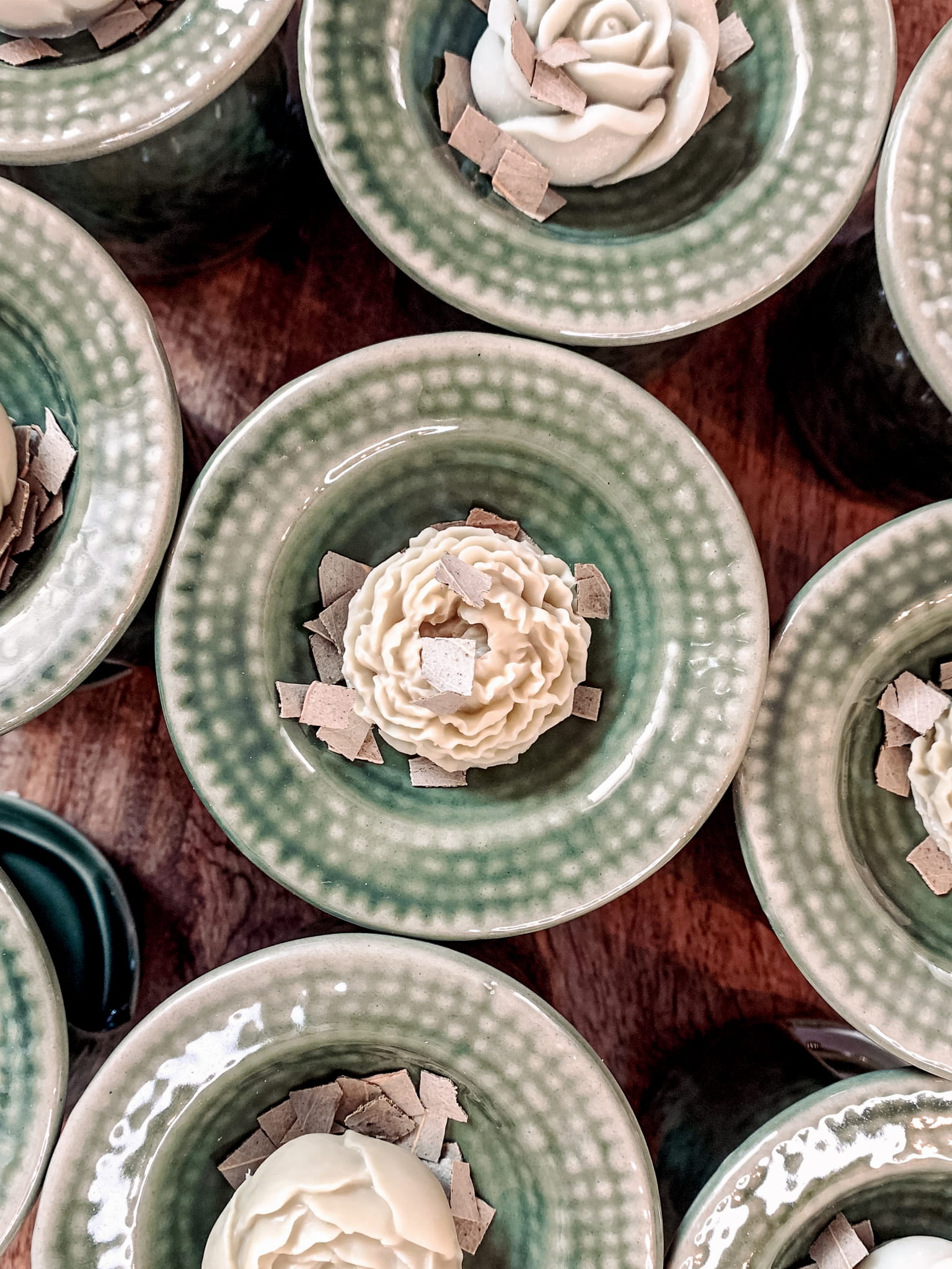Bezzapachowa świeca sojowa z dekoracyjnym kwiatem w odcieniu zieleni – minimalistyczna i stylowa