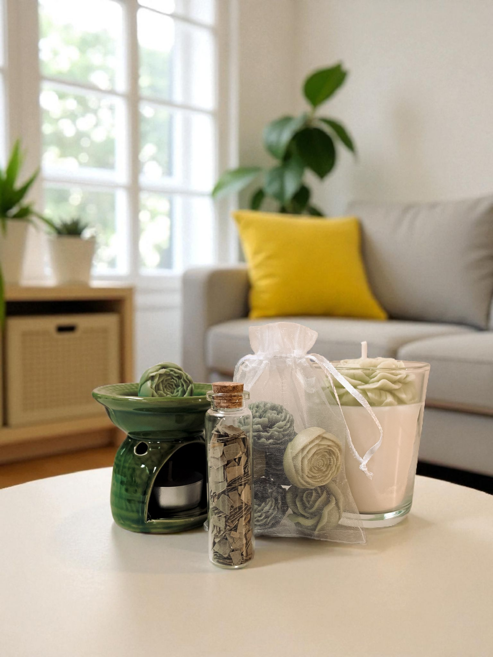 Zestaw prezentowy z kominkiem Zielona Harmonia to połączenie elegancji, funkcjonalności i naturalnych aromatów, które doskonale wpasują się w każde wnętrze. Składa się z ręcznie wykonanej świecy oraz kominka zapachowego, tworzących wyjątkowy duet, który wprowadzi do Twojego domu niepowtarzalny klimat spokoju i harmonii.