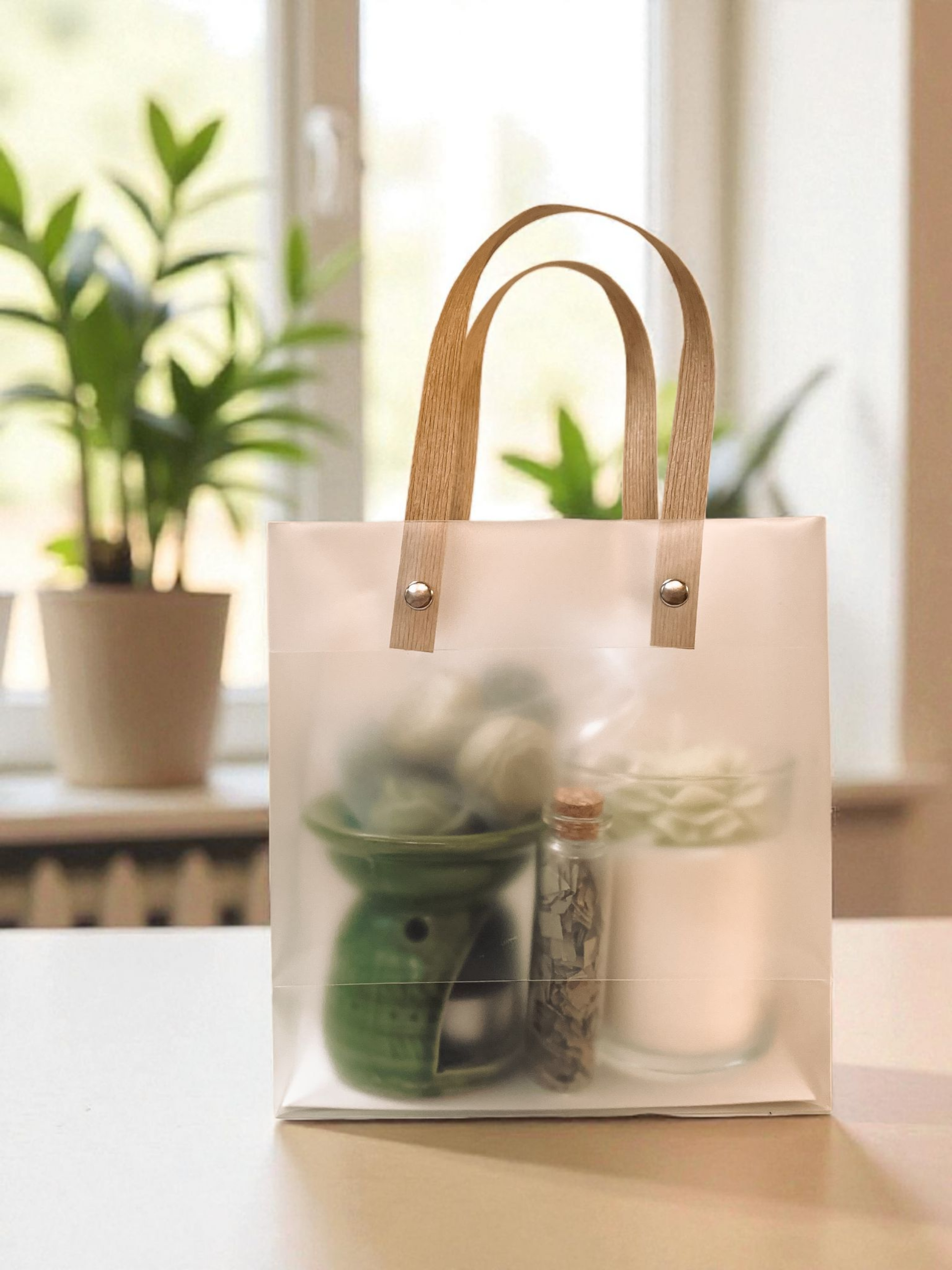 Całość zapakowana w elegancką, przezroczystą torebkę prezentową, która podkreśla wyjątkowy charakter zestawu. To idealny prezent dla osób ceniących naturalne piękno i subtelność – doskonały na każdą okazję.